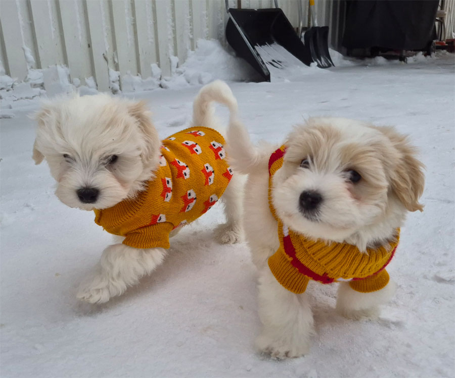 Nu är valparna 9 veckor gamla och tränar för full! De älskar att lära sig nya saker. Vi har hunnit med att leka i snön också, då det äntligen var en dag då det inte var så kallt och det inte snöade. Det har stormat och snöat sen 1 januari.