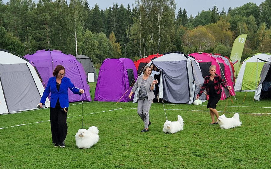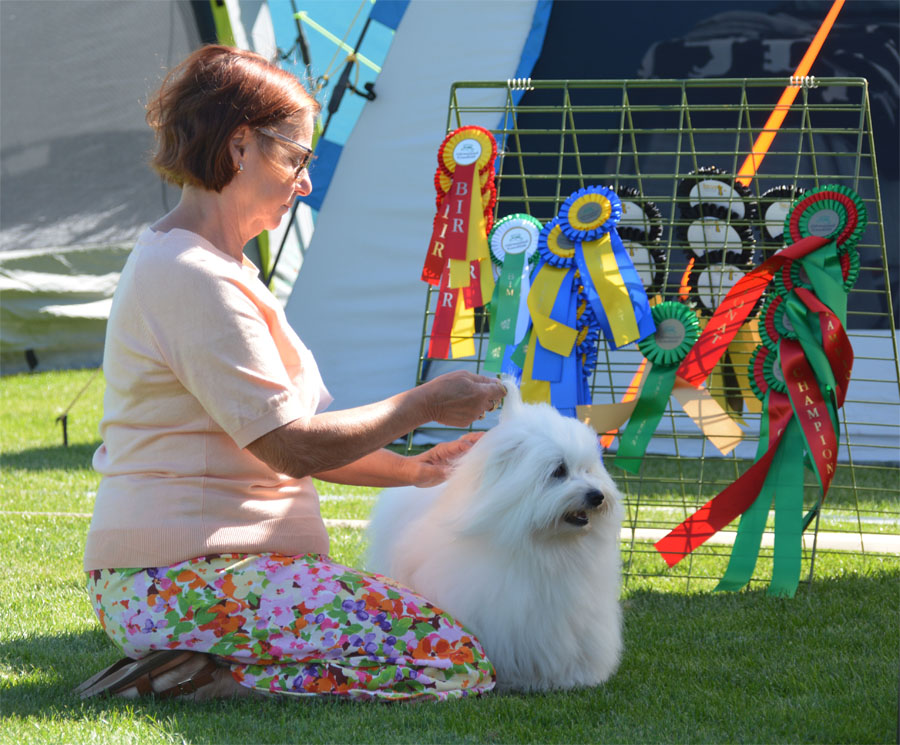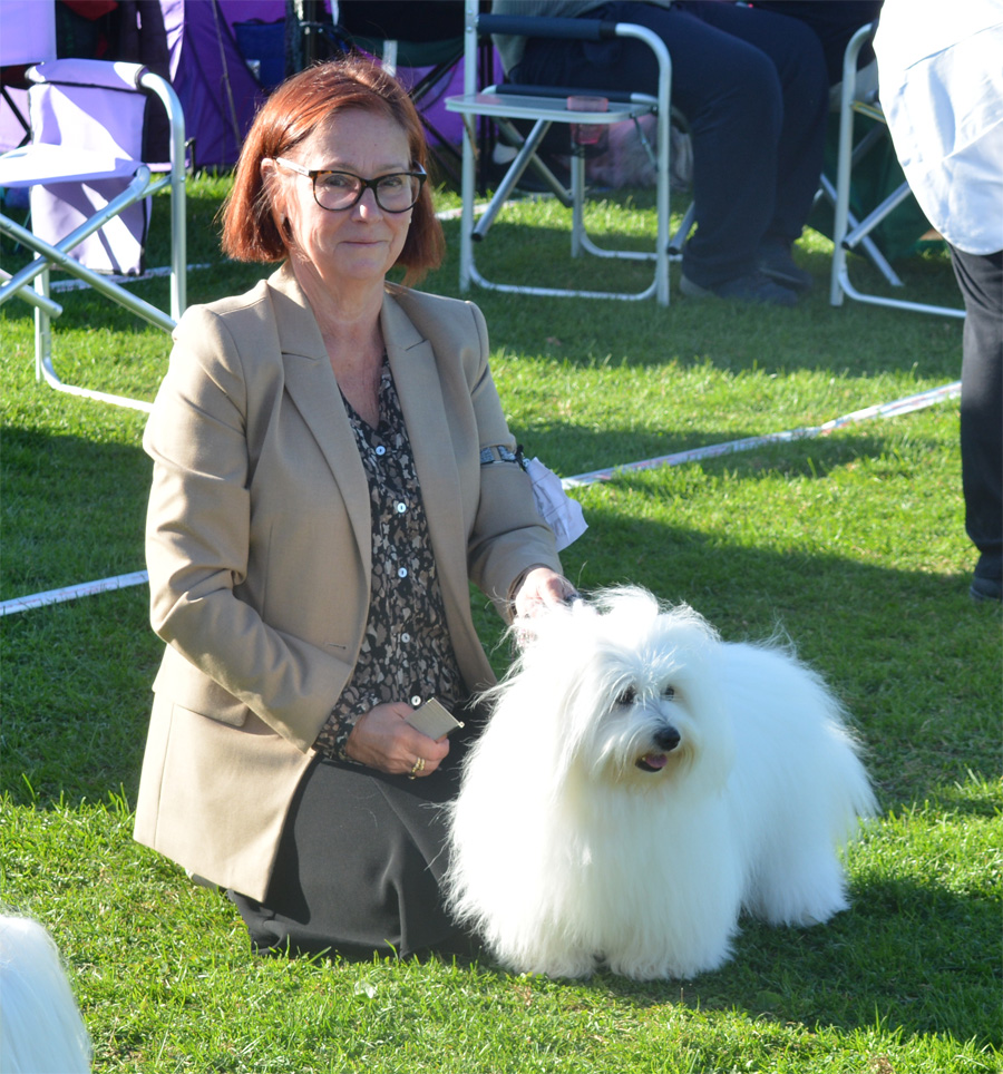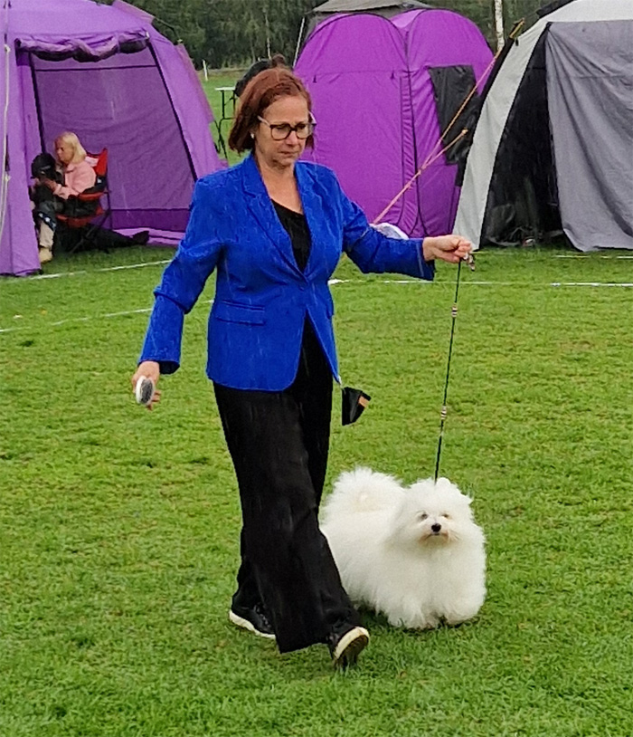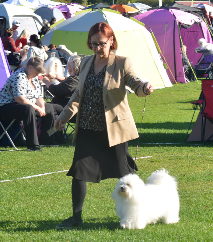 Judge critics: 20 months. Very feminine female in size & type. Excellent cotton coat & texture. Very feminine triangle head. Excellent scissor bite. Nice pigmentation. Nice neck. Very nice shoulders & upper arm. Very nice convex topline. Excellent ribcage. Nice croup & carriage on tail. Nice hindquarters. Nice temperament & movement from all sides.